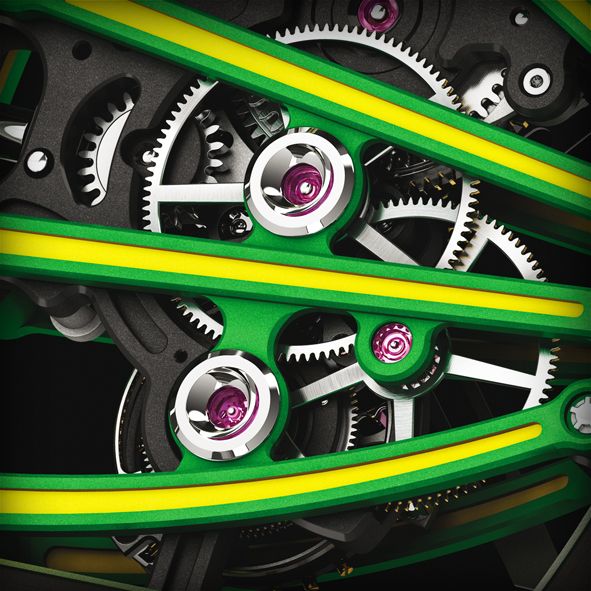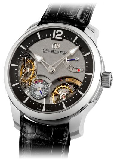 Greubel Forsey a pour sa part adopté une approche plus économe, avec « seulement » des échappements à double balanciers inclinés à 35°, régulés par un différentiel sphérique. La voie n’est pas nouvelle pour la marque qui avait déjà exploré cette piste à Bale en 2009 avec deux oscillateurs superposés à 20°.