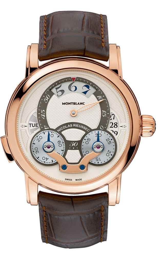 Montblanc, avec la même constance, poursuit le développement de ses best-sellers, au premier rang desquels trône la Nicolas Rieussec. Poursuivant l’exercice de cette ligne qui consiste à proposer une lecture des temps par disque, la manufacture a développé une nouvelle référence à une seule aiguille (des minutes) et calendrier annuel capable de donner l’heure par disque rotatif des heures. Ingénieux : pour différencier les 12 heures du jour de celles de la nuit, un second disque vient colorer le chiffre de l’heure en cours en gris ou bleu nuit, selon que l’on est justement en journée ou en nuit. Simple, efficace.