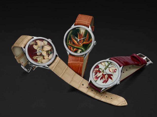 Quelques mètres plus loin dans les allées feutrées du SIHH, Vacheron Constantin présentait de nouvelles versions florales de sa collection Métiers d’Art. Email cloisonné, sertissage, guillochage, etc. : on ne rentrera pas ici dans la technique, on préférera s’extasier devant des pièces qui tutoient la perfection. Dans ce registre des Métiers d’Art horloger, Vacheron Constantin affirme une maîtrise totale de son sujet. Comme d’habitude, il sera question de coffret en séries limitées de 20 exemplaires.