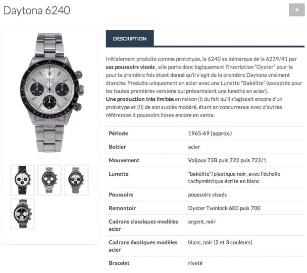 VintageDaytona.com permet aussi bien au collectionneur qu’à l’amateur de comprendre et d’apprécier ce modèle mythique de chez Rolex le tout sur un support transparent.