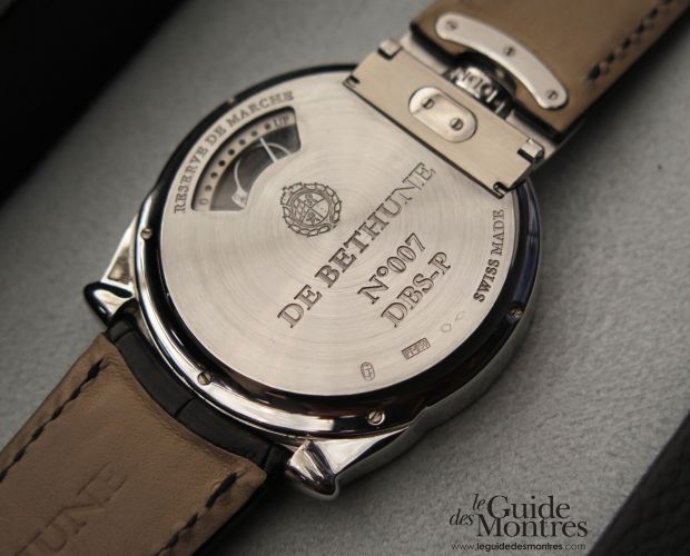 Son tourbillon est conçu, développé et assemblé en interne. Principales caractéristiques : un tourbillon 30 secondes, cadencé à 36 000 alternances par heure, ultra-léger (63 composants pesant 0.18g dont le plus léger pèse moins de 0,0001 gramme et le plus lourd 0,0276 gramme). Là encore, la pièce est dotée d’une réserve de marche de 5 jours. Les généreuses dimensions de l’époque ont été conservées, à 45 mm. Seul regret : un fond plein. A cette réserve, De Bethune répond que l’essentiel est visible côté cadran… 195 000 CHF.