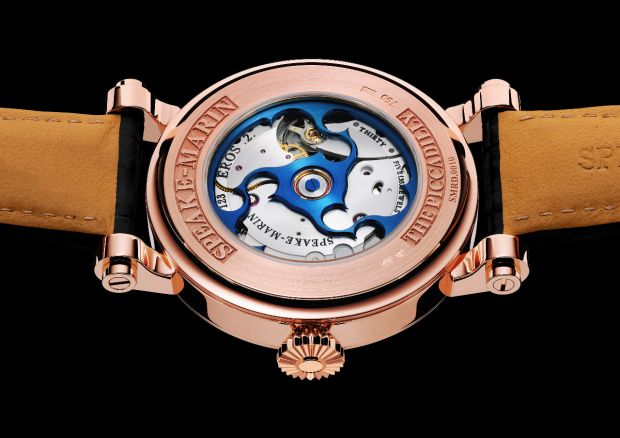 Un design puissant, ces aiguilles so british, ces chiffres romains qui vont en rétrécissant vers l’intérieur, ce poinçon maison, et surtout cette masse oscillante finement sculptée : pas de doutes, nous sommes bien en présence d’une Speake-Marin. Nouveau modèle ? Oui…et non.