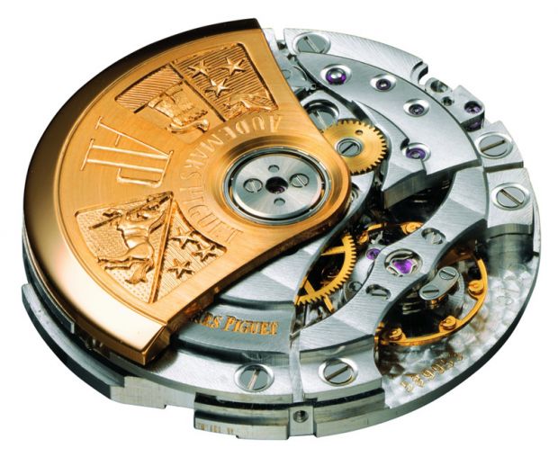 – Remontage automatique bidirectionnel, rotor en or 22 carats gravé du monogramme AP et des armoiries des familles Audemars et Piguet