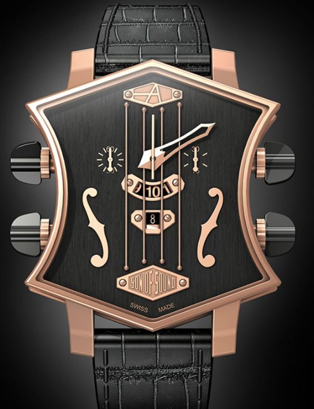 L’infatigable Yvan Arpa suit quant à lui sa route avec sa propre marque ArtyA, complétée par une seconde marque, Spero Lucem. Rien ne les lie si ce n’est l’homme. ArtyA, d’un côté, a littéralement commis les deux Son of Sound, garde-temps format XXL en forme de tête de guitare, comprenant un mouvement maison.