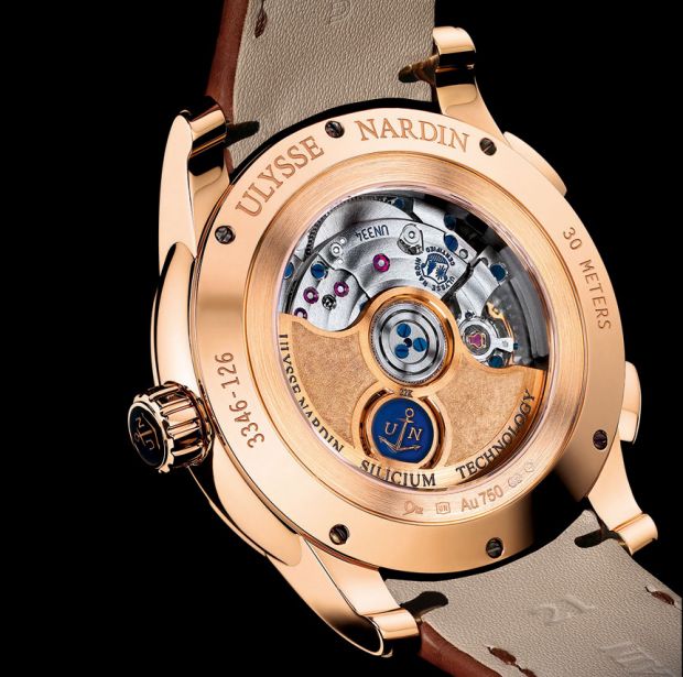 Du côté des indépendants, la très dynamique Ulysse Nardin dévoile la Dual Time Manufacture, qui autorise le réglage du second fuseau horaire et de la date en avant aussi bien qu’en arrière. Comme la collection Marine, la pièce est équipée d’un mouvement entièrement développé et manufacturé par Ulysse Nardin. C’est d’ailleurs la volonté affichée de la marque que d’aller vers une proportion croissante de mouvements maison, comme le soulignait récemment Patrik Hoffmann, CEO : « Notre objectif est de ne plus avoir aucun calibre ETA dans nos montres. Nous en approcherons l’année prochaine. Je pense qu’en 2014, nous produirons plus de 8000 chronomètres de marine sur mouvement manufacturé ». Cinq nouveaux calibres ont ainsi vu le jour en 2013, et deux autres sont en préparation pour 2014.