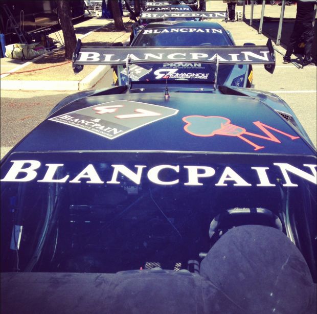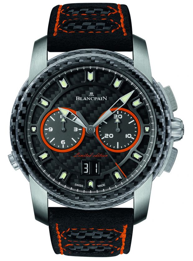 J’emprunte la fameuse Blancpain L-evolutionR. La coque titane et le cadran carbone en font une montre ultra légère. La fine boite de 43,5mm laisse une belle place aux chronos à 3H et 9H, dateur à 6h. A plus de 50 composants par gramme, Blancpain prouve qu’en marge des grandes classiques de sa gamme, la manufacture maîtrise parfaitement les nouveaux matériaux. Balancier en silicium et mouvement amagnetic, embrayage, échappement, le moteur de cette Blancpain fait immanquablement penser aux trésors de technologie que renferment les V10 Lamborghini.