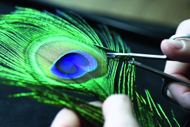 La montre repose sur l’art de la plumasserie. C’est un métier d’art malheureusement presque oublié qui consiste en la réalisation d’un cadran entièrement à base de plumes naturelles. Dans la pièce, c’est une plume de paon qui a été choisie. Corum avait déjà réalisé des Feather Watch par le passé mais la collection s’était éteinte au tournant du siècle. Seule Harry Winston avait temporairement repris le concept.