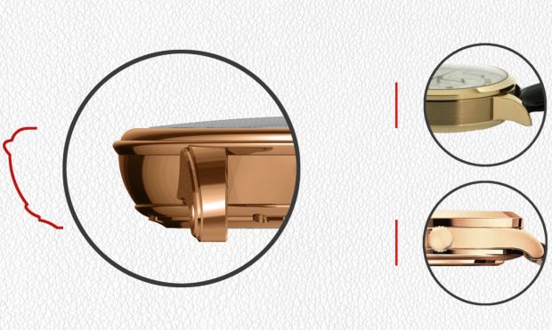 Il faut prendre la pièce de côté pour le voir : la boîte de la TB88 est particulière et d’une rare complexité…qui ne se voit pas, et c’est là toute son élégance. Elle ne comporte pas de flancs droits, beaucoup plus faciles à produire. Les fonds sont véritablement apposés de part et d’autre.