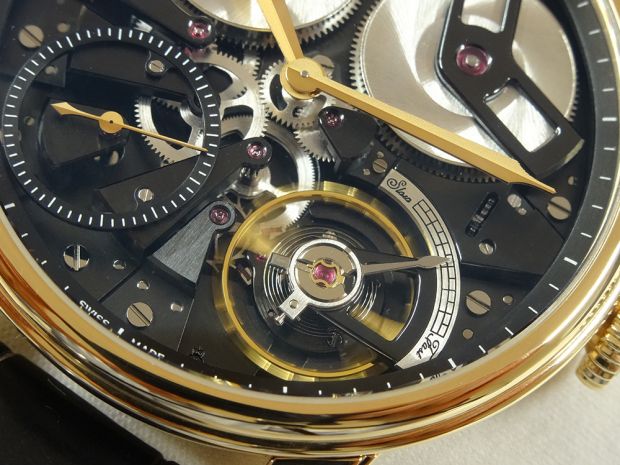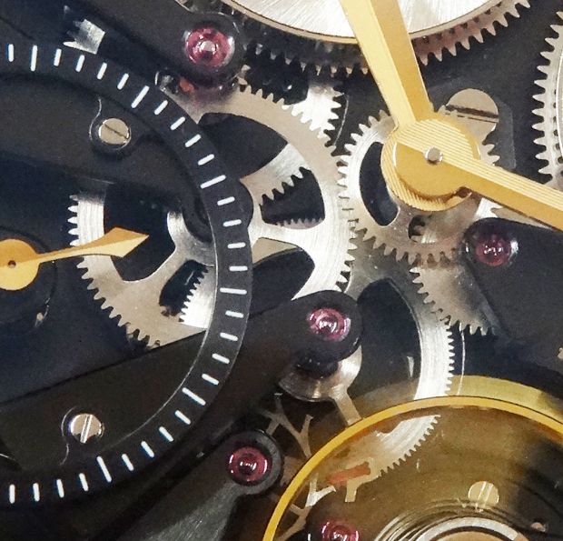Avant même de la déshabiller, on note que la TB88 est doté d’un mouvement manufacture. C’est la première caractéristique de la marque : celle de se reposer à 100% sur sa maison mère, qui n’est autre La Joux-Perret, véritable complexe horloger qui rassemble un bureau d’étude, de design, mais aussi et surtout l’un des centres de production horlogère les plus pointus du moment. Du prototype au contrôle, du décolletage au découpage jusqu’à l’assemblage et la décoration, La Joux-Perret fait tout…pour tout le monde. Un grand nombre de marque fait appel à elle. Arnold & Son en est une, à ce détail près que c’est une marque interne au groupe.