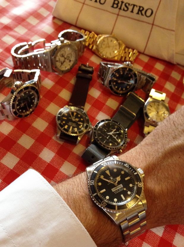 Shooting improvisé lors d’un déjeuner entre collectionneurs de montres.