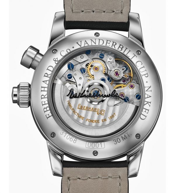 Avec la Tazio Nuvolari Vanderbilt Cup Naked, la recette fonctionne. Eberhard s’est inspiré du coureur automobile du même nom (1892 – 1953). La marque a actualisé sa pièce avec un diamètre plus grand que celui en vigueur à l’époque (aujourd’hui à 42 mm).