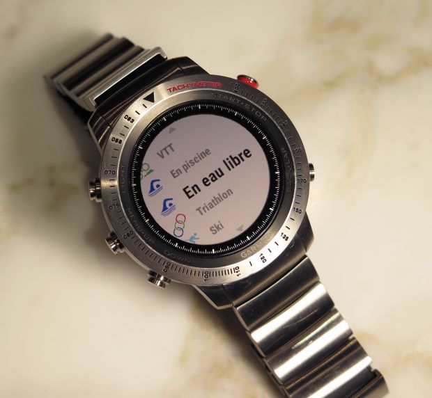On ressent immédiatement qu’on a à faire à un produit bien conçu, bien fini et utile au quotidien comme une montre mais surtout comme un véritable outil. Le boîtier étanche à 10 ATM (100 mètres) est robuste et léger à la fois, on est loin (très loin) de la montre gadget. Le verre saphir ultrasolide et résistant aux rayures ainsi que le bracelet hybride innovant en titane brossé est composé de liens uniques en leur genre alliant le titane et l’élastomère pour un confort et une flexibilité sans égal. Un second bracelet en silicone est présent dans la boîte et se change et moins de 2 minutes grâce au système de démontage rapide.