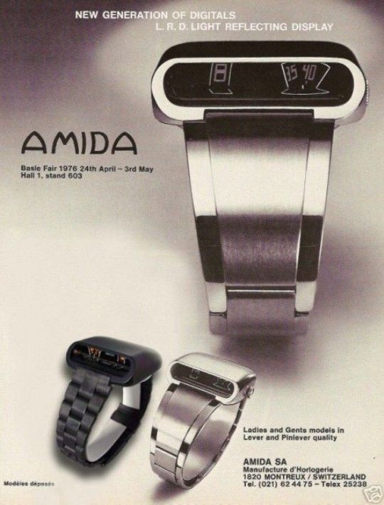 Mais quelques marques courageuses (ou inconscientes) vont contre-attaquer et, en 1972, l’une d’elles – Amida – affrontera les usurpateurs électroniques sur leur propre terrain. Entraînée par un mouvement mécanique, l’Amida Digitrend proposait un boîtier fuselé – la tendance était au futuriste – et un affichage digital vertical. Elle ressemblait à une montre à quartz d’avant-garde et deviendra finalement une pièce emblématique… mais trop tard pour sauver l’entreprise.