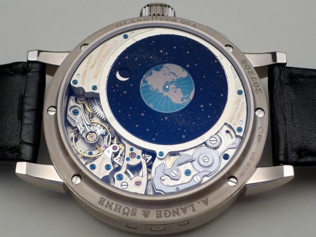Dans l’absolu, la Cartier Astrocalendaire ou la JLC Hybris Mechanica 11 furent pour moi les plus impressionnantes. Mais mon coeur ne résiste pas à la Richard Lange « Terraluna » qui malgré un cadran qui nécessite un temps d’adaptation, m’a séduit par son ciel parsemé de plus de 2.000 étoiles et qui met en scène la Terre, la Lune et le Soleil (symbolisé par le balancier!) pour notre plus grand plaisir. Un spectacle astronomique saisissant qui nous fait regretter de ne pas pouvoir porter la montre à l’envers.
