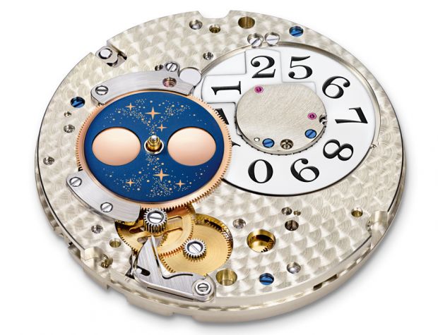 Répondant à un calcul beaucoup plus précis, l’engrenage à sept paliers de la Grande Lange 1 Phase de Lune réduit cet écart à moins d’une minute par lunaison. Une fois correctement réglé, l’affichage ne devrait être corrigé d’un jour qu’après 122,6 ans, pour autant que la montre fonctionne sans interruption. Esthétiquement, la phase de Lune de la pièce comporte plus de 300 étoiles de différentes grandeurs, façonnées au laser.