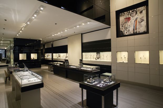 Cartier a discrètement ouvert le 17 août en pleine torpeur estivale. Avec son voisin Bucherer, elle partage même un couloir, qui permet de passer d’une boutique à l’autre. TAG Heuer a préféré faire bande à part, avec sa propre entrée.