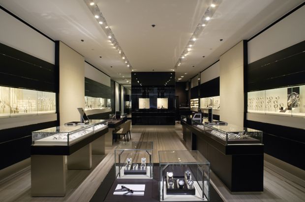 Cartier, avec ses 450 mètres carrés et ses 25 personnes, a vu grand. La boutique ne compte pas moins de 22 pièces de haute horlogerie. TAG Heuer en possède également quelques unes. Les deux enseignes partagent simplement – et en conséquence – d’imposants systèmes de sécurité. Pour Cartier, c’est déjà la 7ème boutique, le 13ème point de vente.