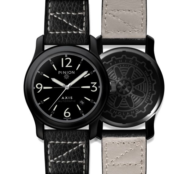 Pour le moment, Pinion présente un seul modèle, l’Axis, décliné en trois versions : acier (2350 euros), noir (2600 euros) et bronze (2850 euros). La montre est siglée « England ». La mention ne veut rien dire puisqu’elle n’est pas précédée d’un « Made in » : elle se soustrait donc du cadre légal qui y est attaché et aurait pu attester de sa provenance. En revanche, cette mention indique ce que la montre n’est pas : Swiss made. Entourée d’un silence évocateur sur le sujet, on peut donc craindre des mouvements chinois.