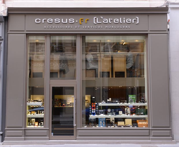 Très souvent, les ateliers des boutiques sont un peu mis à l’écart, comme si c’était une activité confidentielle. Cresus a pris le parti de mettre en avant son atelier, en l’associant à une boutique qui recèle de superbes montres vintage et d’accessoires (écrins, bracelets, outils horlogers…) indispensables au passionné d’horlogerie.