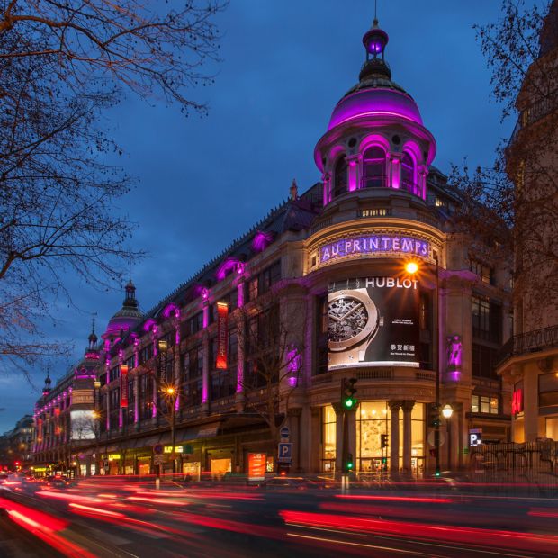 Près de la Place de l’Opéra, de la Place de la Madeleine et de la Gare Saint-Lazare, le Printemps Haussmann, qui a créé un espace dédié à l’horlogerie au 1er étage du Printemps Mode, offre cinq emplacements ciblés pour des affichages de 55m2 au dessus des entrées principales du magasin, notamment boulevard Haussmann.