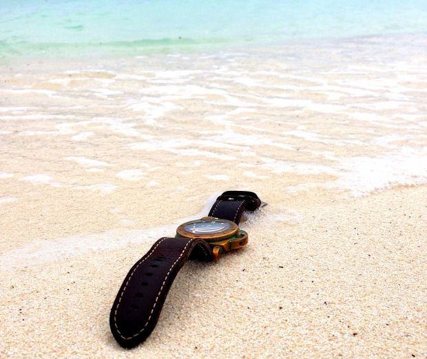 La PAM00382 est une montre de plongée d’aspect « vintage » qui rappelle, avec son cadran vert (qui s’associe parfaitement bien avec le boîtier en bronze) et son bracelet vieilli, les montres militaires d’époque, notamment celles produites, il y a une cinquantaine d’année, pour les plongeurs de la marine militaire égyptienne.
