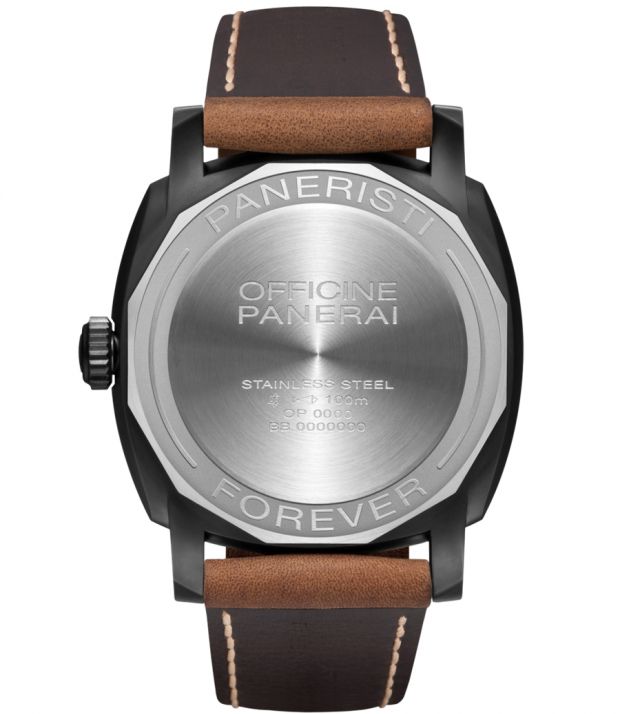 Cette esthétique se retrouve notamment sur un modèle qui va affoler – une fois encore – les comptes des Paneristi, les fans les plus ardents de la marque italienne : la Radiomir 1940 3 Days PAM 532 – 47 mm « Paneristi Forever », une édition spéciale dotée d’un boîtier Radiomir 1940 en acier revêtu de DLC dont le fond est gravé de la mention « Paneristi Forever ». Cette montre est dédiée aux membres de la communauté qui, depuis treize ans, se donnent rendez-vous sur le site www.paneristi.com.