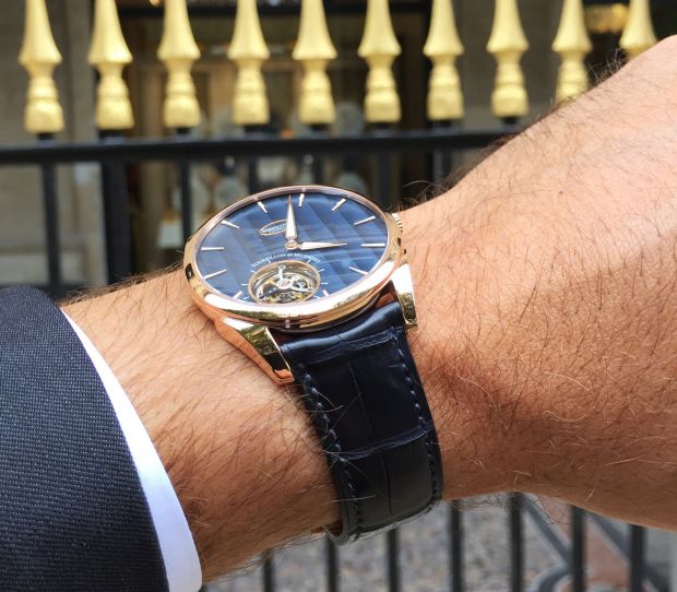 Au poignet, c’est beau, ce n’est pas une montre spectaculaire, c’est une montre pour connaisseur un peu dandy, en métal et cadran blanc, elle est presque indétectable, la vraie furtivité : l’élégante discrétion.