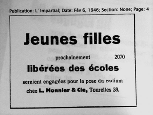 Au delà de ces cas immobiliers bien ciblés, on ne mesure pas encore la portée de cette prise de conscience. Car le fait que certaines canalisations soient contaminées révèlent deux autres choses : que le radium était, en certain cas, purement et simplement jeté aux toilettes, et que par conséquent, certains cours d’eau puissent être pollués. Et cela sans même mentionner les retraitements plus responsables qui ont été faits à l’époque, avec mise à la décharge…mais qui impliquent à leur tour que certaines décharges doivent être à leur tour analysées ! Sans même parler des employés, le plus souvent des femmes, qui manipulaient à mains nues la matière. On se souvient du scandale des Radium Girls américaines qui ouvrirent un large procès aux Etats-Unis dans les années 30. Elles virent leur préjudice reconnu et réparé à hauteur de 10 000 dollars par salariées.