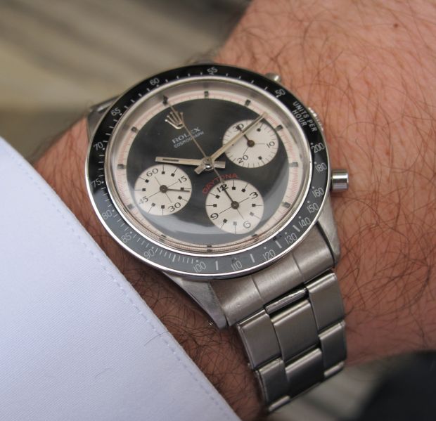 Photo de la Bell & Ross WW1 Chronographe Monopoussoir Heritage au poignet.
