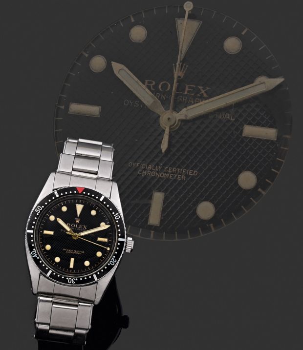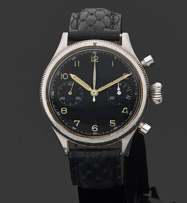 Puis dans la partie vintage, notons la présence de 4 belles pièces : un chronographe militaire Type XX Breguet (lot 33), un chronographe Rolex Anti-magnétique réf. 2811 des années 30 avec un cadran noir (lot 134), un chronomètre Géophysic Jaeger en acier de 1958 (lot 134B) ainsi qu’un Turn-o-graph Rolex Ref. 6202 de 1953 avec un cadran noir nid d’abeille.