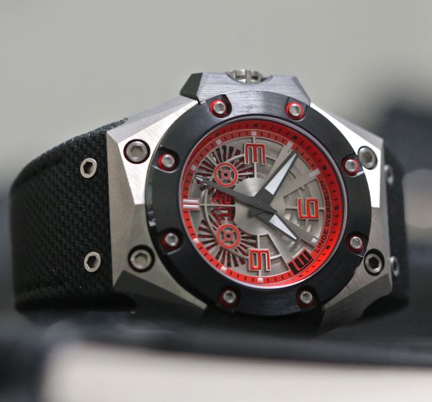 La ligne Oktopus est l’une des deux familles que compte Linde Werdelin, avec la Spido. Les montres de la marque possèdent toutes ce design caractéristique, très marqué. Il offre ici un boîtier aux multiples facettes conçues pour pouvoir accueillir l’ordinateur de poignet également conçu par la marque, le Reef.
