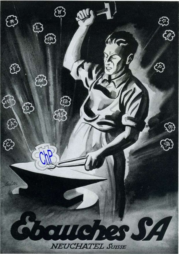 Historiquement, les deux noms sont corrects. Ebauches SA, ancien nom de Valjoux, intègre une entreprise plus large en 1931, l’ASUAG. Cette dernière sera fusionnée avec la SMH (Société suisse de microélectronique et d’horlogerie SA) et l’ensemble renommé The Swatch Group en 1998. En résumé, Valjoux est un trésor de guerre du groupe.